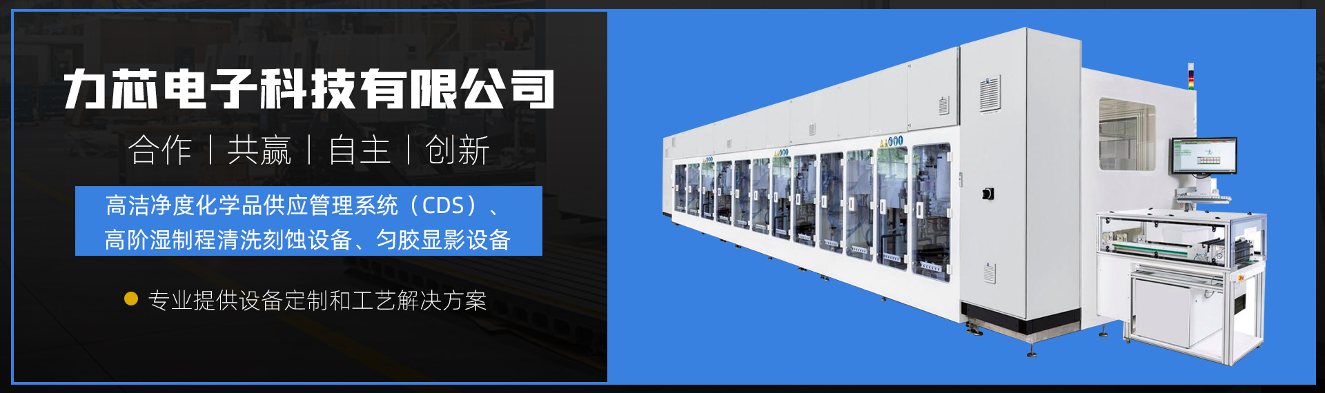業務覆蓋范圍全面,支持清洗、甩干、焊接、蝕刻、封裝化鍍、供液系統等設備研發與生產。其中從接單-設計-組裝-生產-測試-裝機-售后服務-PM完全由力芯科技自主制作。